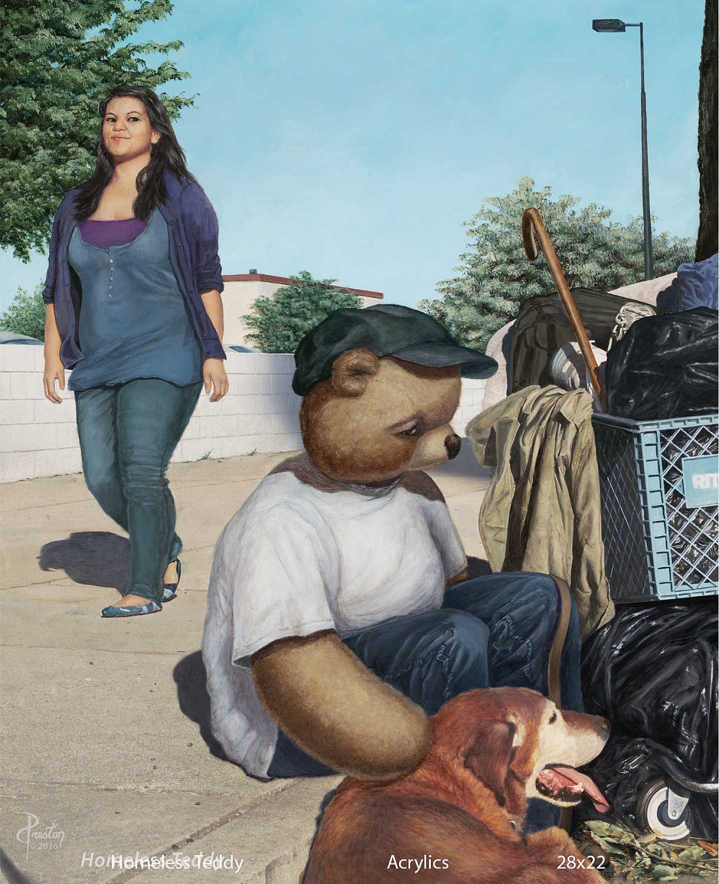 The nature of my work is that through the use of varied imagery, classical & digital painting techniques & sometimes humor, I often create a visual commentary on topical societal issues and encourage the viewer to contemplate the meanings and symbols in my imagery. I’ve worked with drug addicts, the homeless, victims of sexual abuse, young people who have been incarcerated, and know people in the porn industry so I have definitely seen some of the seedier side of life. I’ve seen how people can make a bad decision and get trapped in that decision. They are unable to figure out how to get out of the situation in which they find themselves. With that in mind, the nature of my work in my "Twisted Teddys" series utilizes an iconic image of childhood innocence, the teddy bear, to address social issues that are relevant and that affect the human race on a physical and spiritual level. Also, the images are social commentary and show how that childhood innocence can be warped and damaged by societal pressures and influences. At other times, my paintings are inspired by my Native American roots (Choctaw) and my spiritual quest with studies in Jungian symbolism. In either case, I hope the viewer is inspired to be more aware of their global connections to each other, to nature & to take personal responsibility for effecting positive change in society. While some of my landscapes may seem more representational, there is always a spiritual energy that emanates from them and my allegorical images breathe an almost mystical “ah-ha” as I reveal something of myself in the painting process. I create my fantasy pieces to delight & entertain, touching that inner child that is within each of us. I mostly use acrylics, digital or mixed media to create my images.