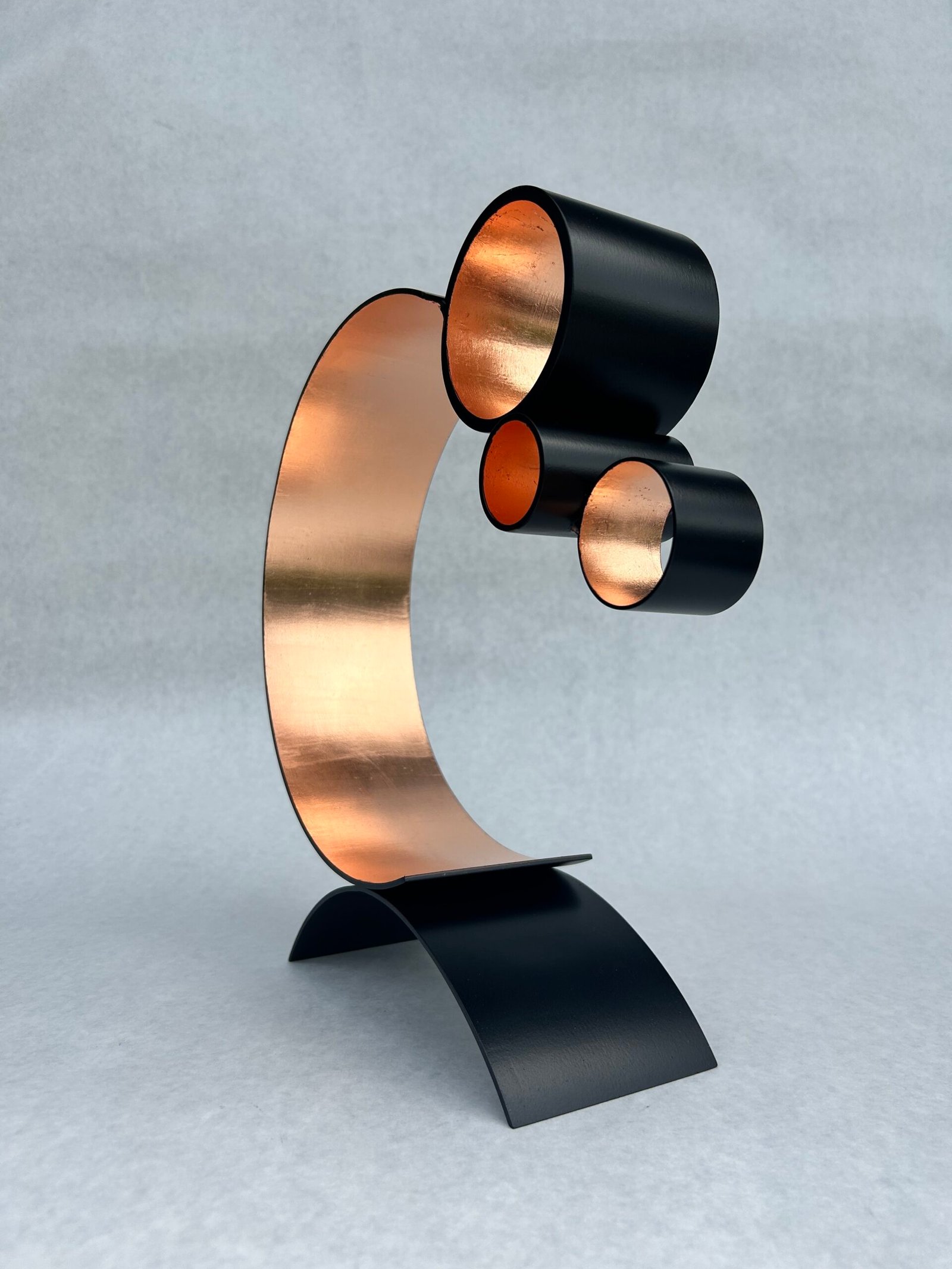 Choosing to work mostly in reclaimed steel, Gia's raw materials are often flawed, imperfect, or damaged. Rescued from the salvage yard, or even from her own scrap bin, the steel forms undergo a metamorphosis to live another life very different from their original one.