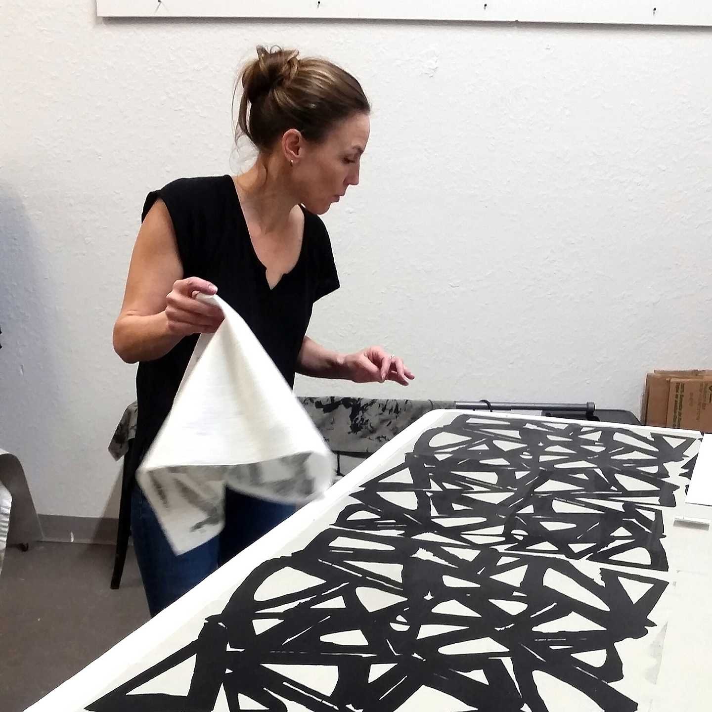 In college I was a potter. I loved the tactile quality of mud squishing through my fingers. Most of all, I loved creating surfaces on the clay that reminded me of decay. I put color on, then scratched it off. I scraped up the edges. I made things irregular, refined yet somehow gritty. I wanted the walls as thin as I could get them and the surface as rough as an ancient relic. At the same time I was taking all kinds of fibers classes, weaving, printing, dying. I loved the processes but fiber seemed just a little too clean. Cut to post college life where having a potters wheel in the spare bedroom of an apartment just won't work. But dying in the the kitchen sink will. And, a print table? No problem. Then came the fabric. I fell in love with the silk. The buttery soft texture of sueded charmeuse and the light as clouds softness of chiffon captured me. I couldn't put it down. I wanted to do the same thing to it as I did with clay, create balance between grit and refinement. Some of my patterns come from photos I've taken of urban decay. Whether it be worn texture on the floor, peeling plaster at a subway stop, a pile of discarded hardware or tread upon leaves, I love it. Other patterns come from the beautiful, but minute details. It is beauty that is so easily overlooked that I feel I must make large. Hidden gems have always intrigued me. Pattern is everywhere we look, but is often overlooked in our rush to finish each day. I love taking ordinary elements of everyday life and making them extraordinary. I screen print with fiber reactive dyes, discharge techniques and also do some occasional hand dying. I love every little bit of the process, from developing the patterns to exposing the screens, to the seemingly endless pinning, printing and yes, even the ironing. It's a meditative process. It keeps me calm, happy and fulfilled.