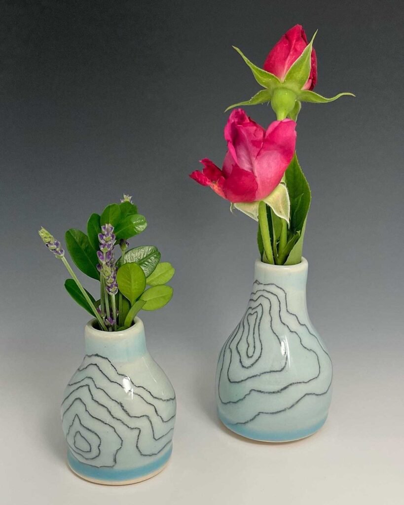 I am forever excited by the tactility of clay. It's a great feeling when someone finds a piece I've worked on and it fits their grip just right, and then a mug I've made gets to be part of their morning routine.. My handbuilt and thrown work serve to emphasize tactility, the construction process, repetition, angle and line. Each piece is one of a kind, and fired in an electric kiln to cone 5. All of the ceramics are dishwasher, microwave and food safe, and are meant for use in the home.